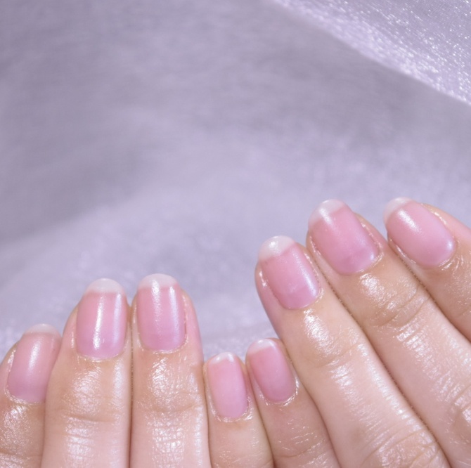 自分のこんな爪も綺麗になるのかなと思っていましたが、ピンク色の部分がどんどん伸びて、通えば通うほど縦長の爪になっていき、驚きました。現在通い始めて7ヶ月、いまでは綺麗な縦長の爪、ピンク色部分と白色部分の境目にカーブがついて、思い描いていた理想の爪になっております。