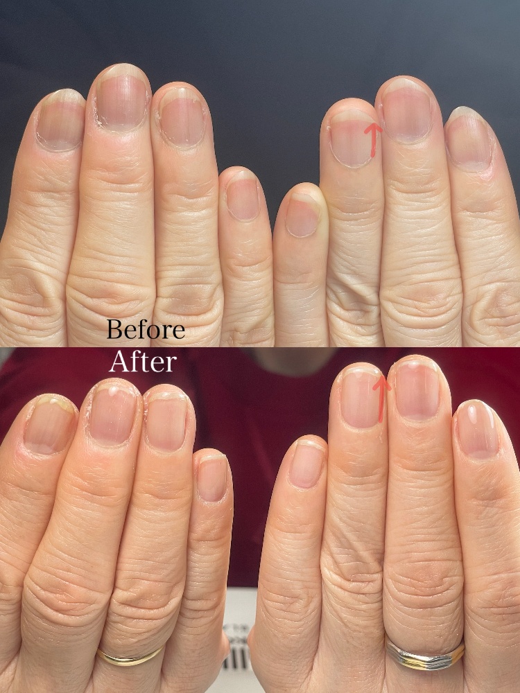 爪のピンクの部分が大きくなり全体的に爪が育った感じです。