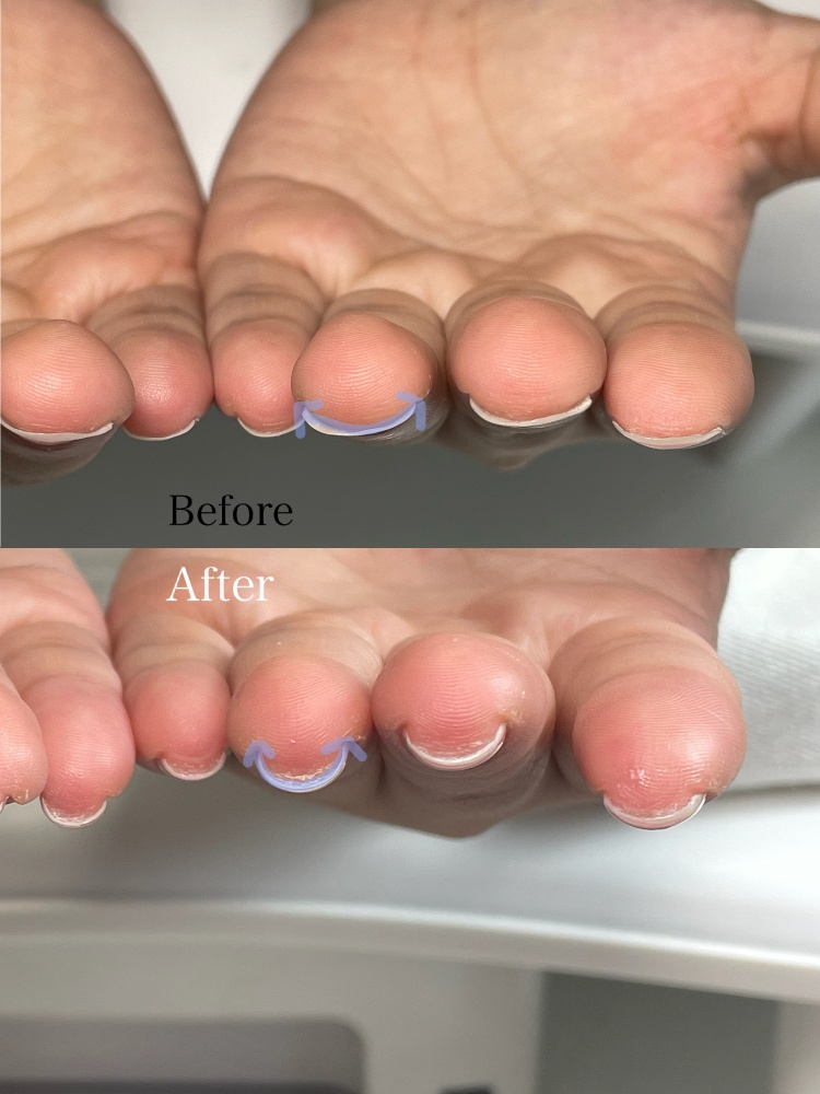 爪のピンクの部分が短く横に広がっていたことと爪の横が赤く腫れて痛くなることが悩みでした。